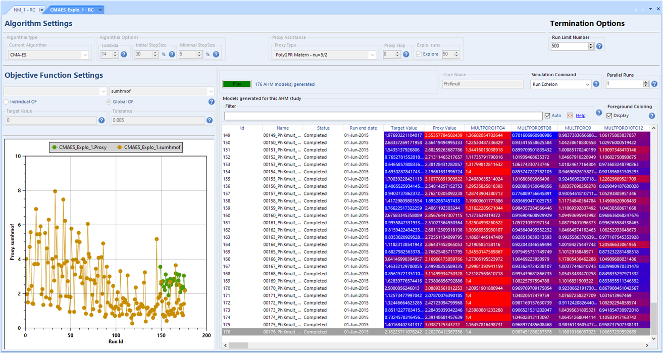 Optimize (also called AHM) has a choice of three optimization algorithms : CMA-ES, Separable CMA-ES, and Nelder-Mead. Proxy Assistance is available to accelerate convergence. The proxies can be initialised with exploration runs.